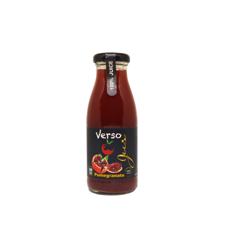 Verso’s pomegranate juice is pressed from Wonderful and Mollar pomegranate varieties grown in Spain. This sweet and aromatic juice captures the genuine taste of the region while providing essential antioxidants and vitamins.